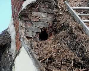 Chimneys should be checked to ensure the brick or stonework is in good condition. Old or poorly maintained unlined chimneys with loose or missing bricks and mortar, could allow hot gases and smoke to escape into upper rooms, the loft space or directly onto the thatch, especially if there is a build-up of soot or a bird’s nest, which could divert hot gases through imperfections in the chimney stack.